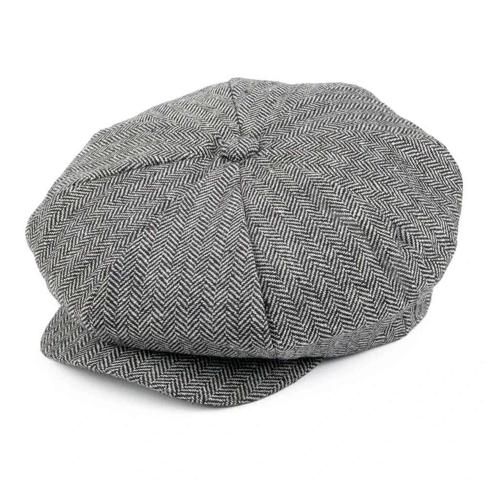 The large profile eight-quarter cap in grey is classic New York City streetwear. The Big Apple is about 12 inches in diameter. Newsboys hawked papers (‘Read all abo’t it’) in this cap that drips with depression era resonance. One size fits most, elasticized sweatband. Comfortably fits 56 to 59 cm. This cap is popular with both men and women.
