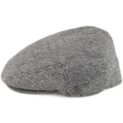 The Jaxon & James Herringbone Flat Cap in grey is a true classic. This beautifully styled five point flat cap in grey herringbone is made of a high quality wool blend and completely lined in satin. For comfort there is a grosgrain ribbon sweatband inside the cap. A removable Jaxon & James logo pin can be found on the left side of the cap.
