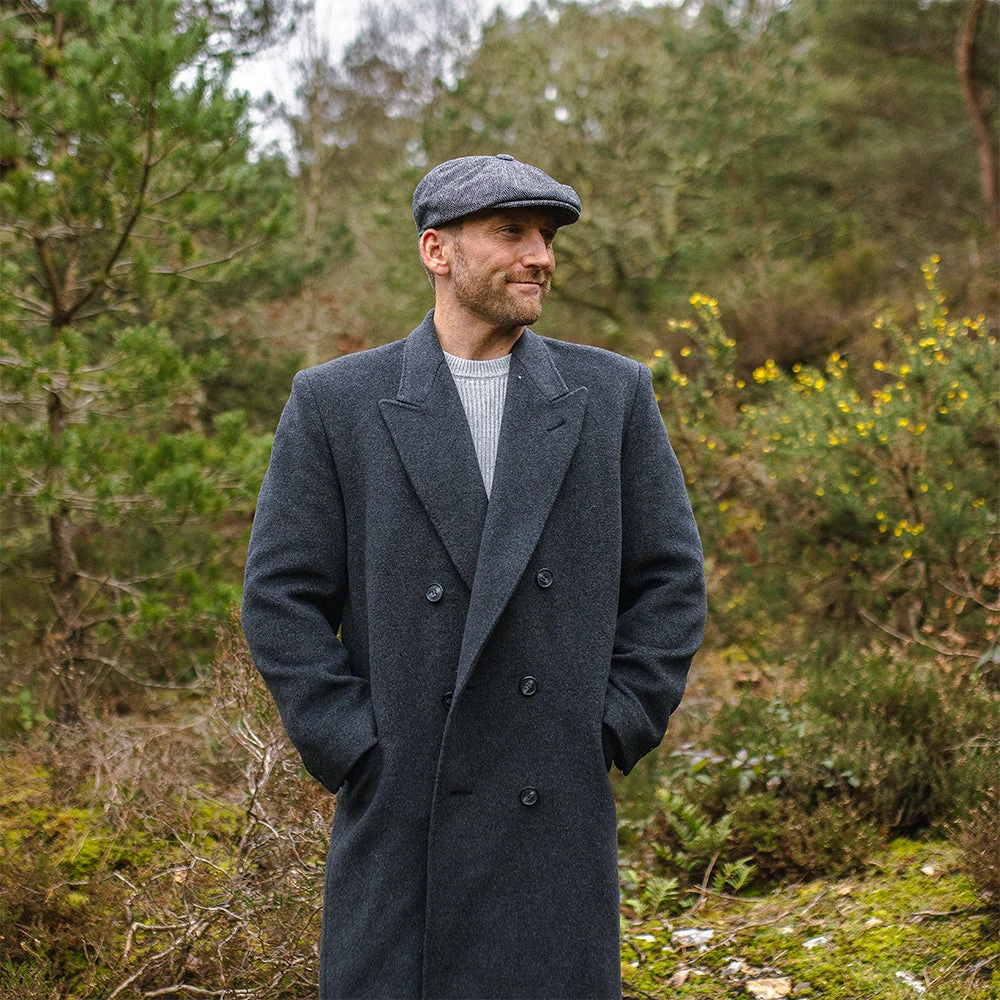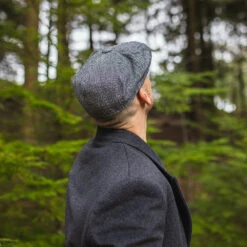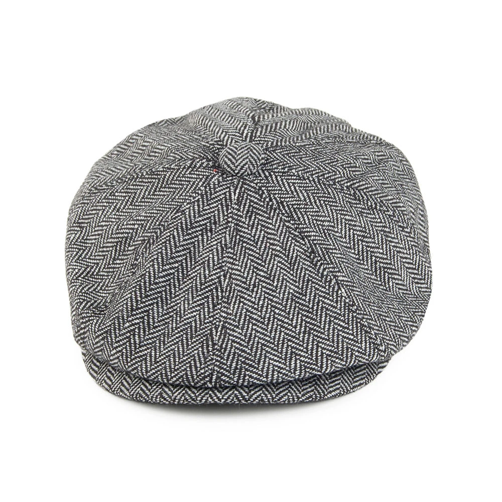 This is the classic grey herringbone newsboy cap being produced by our favourite company, Jaxon & James Hats. The hat is 40% wool, 60% polyester and 100% satin lined. This newsboy cap comes with a 2 inch wide snap bill/visor and a grosgrain ribbon sweatband.