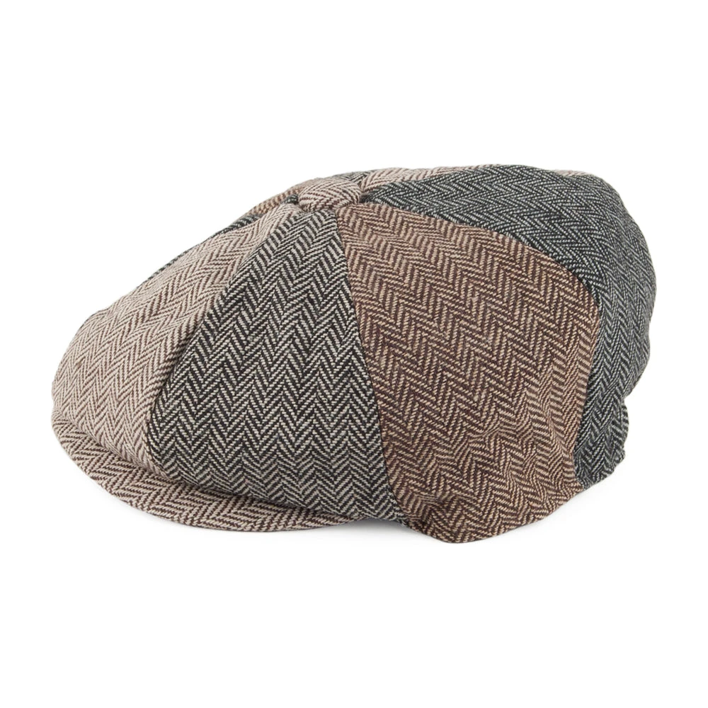 Here is the Jaxon & James Kids Herringbone Patch Newsboy Cap. This great looking hat features a variety of herringbone patterns all on one cap. The hat is made of a wool blend and has a sewn down brim, grosgrain sweatband, satin lining and an elastic band at the back so it will stretch to fit.