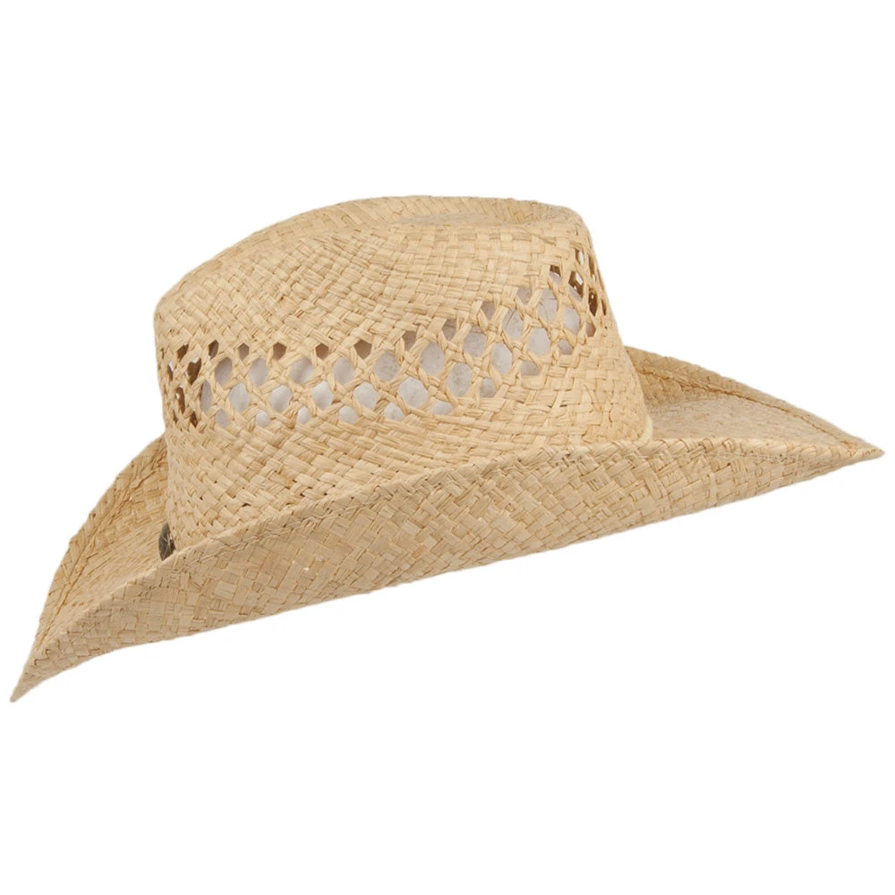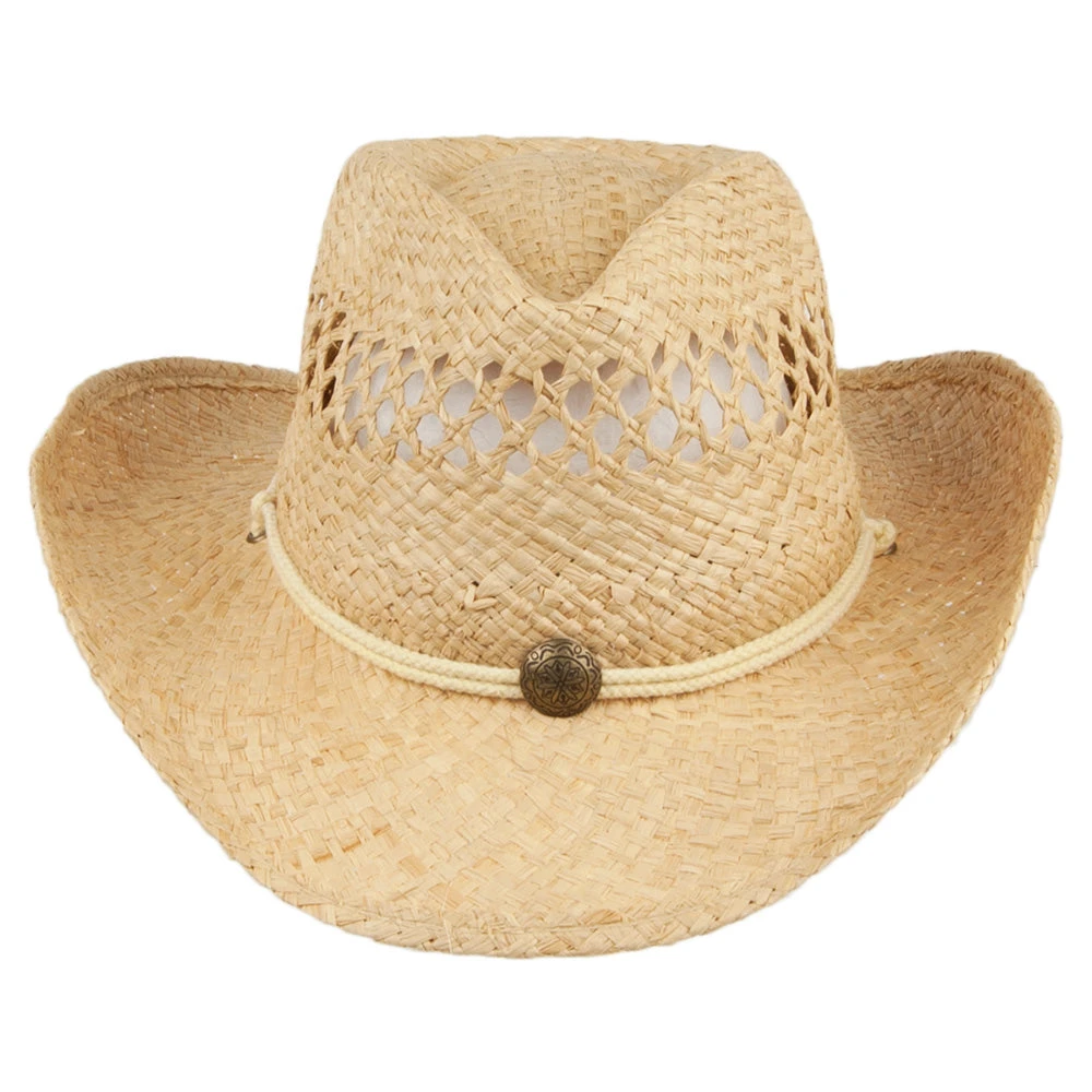 The Jaxon & James Maggie May Cowboy Hat is a raffia straw western hat with a shapeable wire brim. The crown is vented for ventilation and a sweatband makes this a very comfortable hat to wear. The adjustable chincord allows you to secure this hat onto your head.