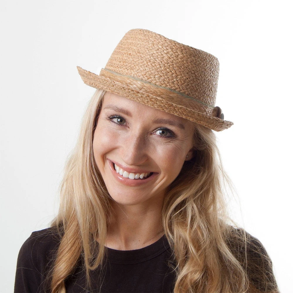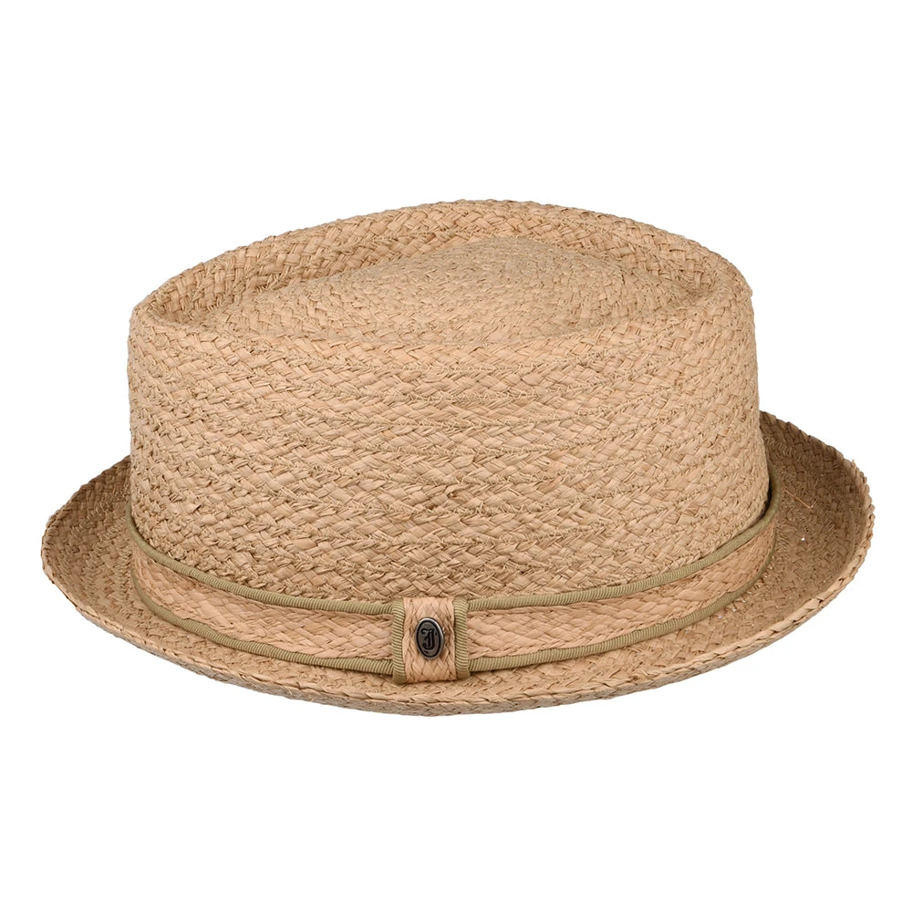 The Diamond Crown from Jaxon & James is a phenomenal pork pie made of tough, durable raffia straw. The hat has an elasticized terrycloth sweatband and is unlined for excellent breathability. This great looking straw pork pie is finished with a natural cotton and raffia hatband.