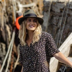 The popular classic style of the Jaxon & James C-Crown Fedora Hat is now offered as a summer straw in natural! Take your favourite hat into the warm summer months, as Jaxon & James Hats, now offers the C-Crown fedora in a comfortable toyo straw! A fine grosgrain hatband is finished with a sleek removable side pin and feather.