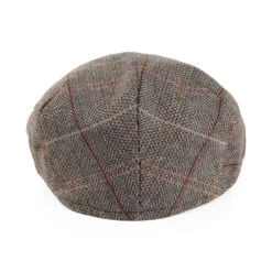 The Jaxon & James Tweed Flat Cap is a beautiful brown and grey tweed windowpane 5-point flat cap that is the perfect cap for the crisp autumn days. Made of a wool blend with a 1.5″ wide snap bill visor and featuring a grosgrain ribbon sweatband.