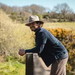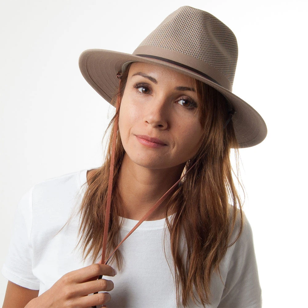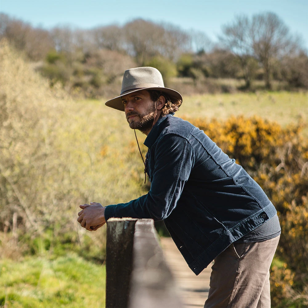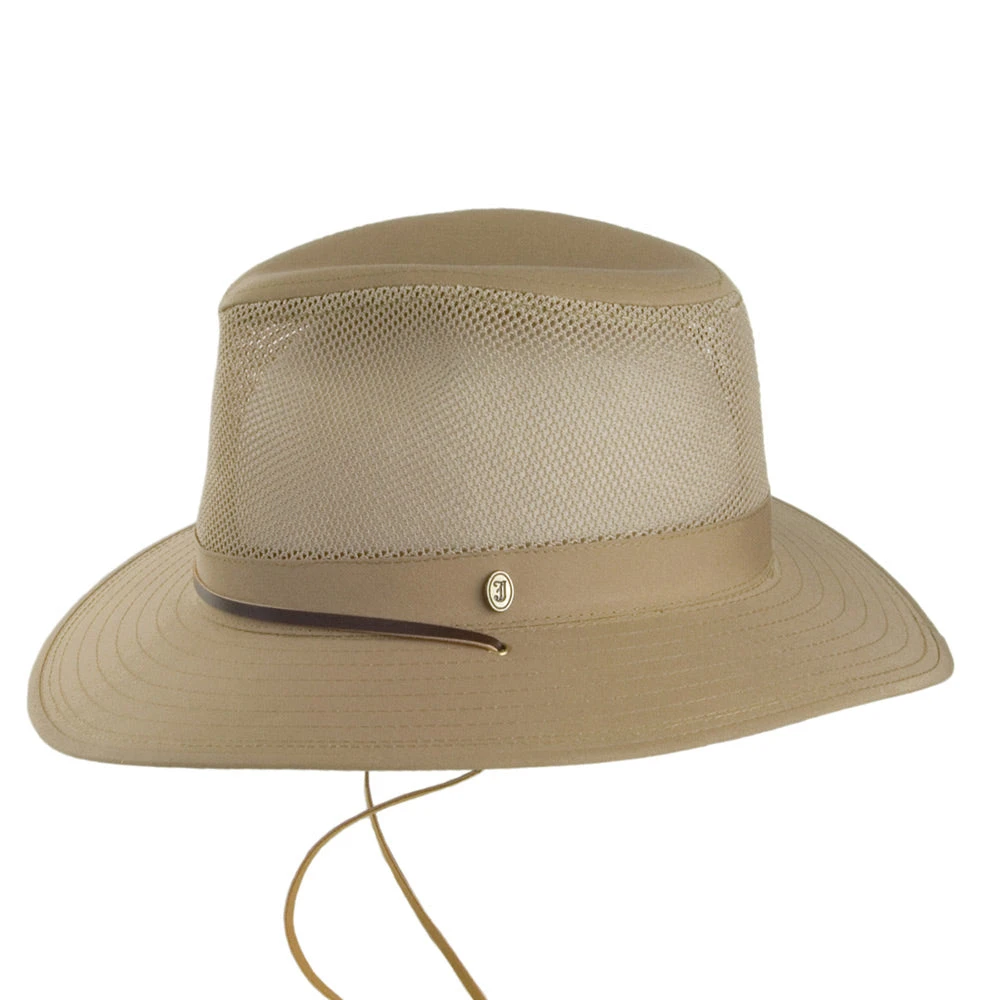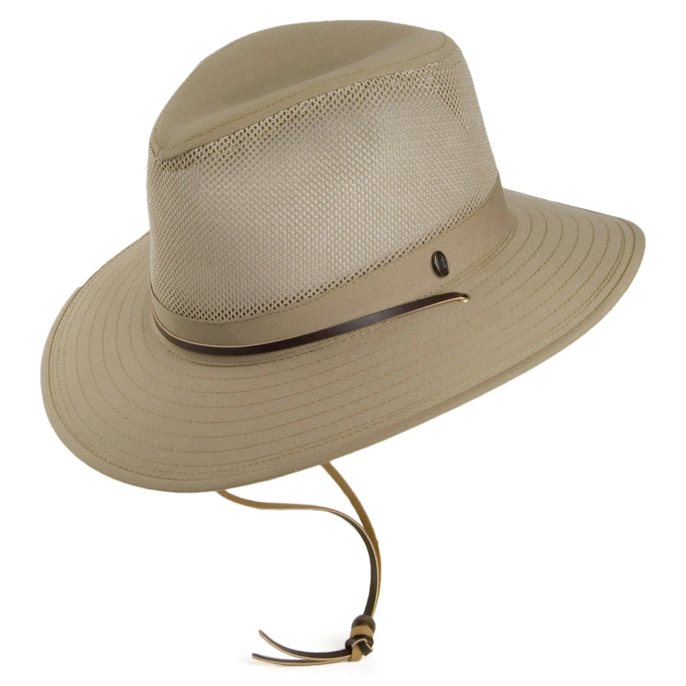 The Jaxon & James Vented Aussie Hat is an Australian style hat with a mesh crown and solid brim. The nylon mesh sides magnify the cool breeze around your head while the solid top and brim protects your head and face from the sun’s harmful rays. The hat has a leather chin cord, a cotton sweatband and cotton trim. This excellent summer item has a 7cm wide brim and 10cm high crown.