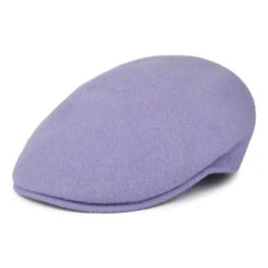 This Kangol classic flat cap in lavender is known as the 504 and always looks great. The 504 wool flat cap is warm, breathable and durable. The brim is sewn to the crown and can also be curved for a better fitting cap. The Kangol kangaroo logo is embroidered at the back of the cap.