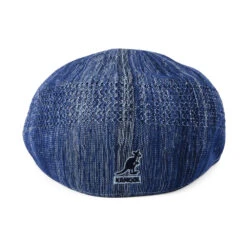 The Color Burst 507 Ventair Flat Cap in denim blue from Kangol is a combination of their Tropic yarn with recycled polyester to create an all over gradient look. Its multi-tonal colour combination makes the cap a great alternative to solid colours and will really elevate your summer outfit. The Ventair is a stylistic weave where 6 rows border the base of the cap. These rows allow for more ventilation, hence the name Ventair. The cap is finished it with the Kangol kangaroo logo embroidered at the back.