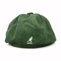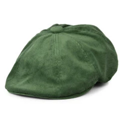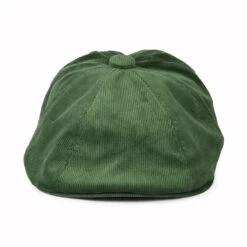 This is the Kangol Hawker Corduroy Newsboy Cap in olive. This 8 panelled cap is made of a comfortable cotton corduroy and features a sewn down brim and the Kangol logo and wordmark at the back of the cap.