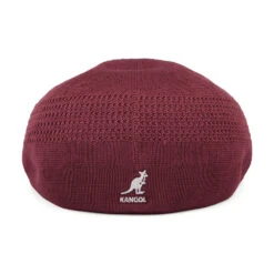 This is the Kangol Tropic 507 Ventair Flat Cap in wine, a sleek style that is a bit narrower than the Kangol 504 style. The Tropic material is a blend of polyester and modacrylic which makes the hat lightweight, comfortable and durable. The Ventair is a stylistic weave where 6 rows border the base of the cap. These rows allow for more ventilation, hence the name Ventair.