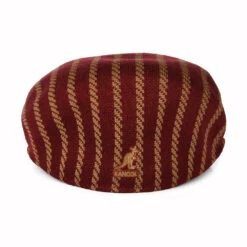 The Kangol Twist Stripe 504 Flat Cap in cranberry-camel has a striped pattern with a twisted visual effect using a two-tone knit. The iconic 504 shape is the perfect base for this pattern as it can be worn forwards or backwards for all of your different looks. Kangol finished this style with their classic kangaroo logo embroidered at the back.