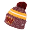 This is the Fleur de Lis Bobble Hat in navy blue from Kusan. This beautiful bobble hat has been hand made in Nepal. The crown has a pretty diamond pattern and the hat has a turned up cuff matching the colour of the bobble and a small leather Kusan badge is attached on the side. The inside features a fleece lining which is made from recycled plastic bottles.