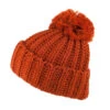 The Oversize bobble beanie hat in burnt orange by Kusan is hand made from the mountains of Nepal. This cable knit beanie is an oversized design that allows you to achieve the slouchy look. The inside of the hat features a fleece sweatband which is made from recycled plastic bottles. An embroidered Kusan flip tag is sewn to the bottom.
