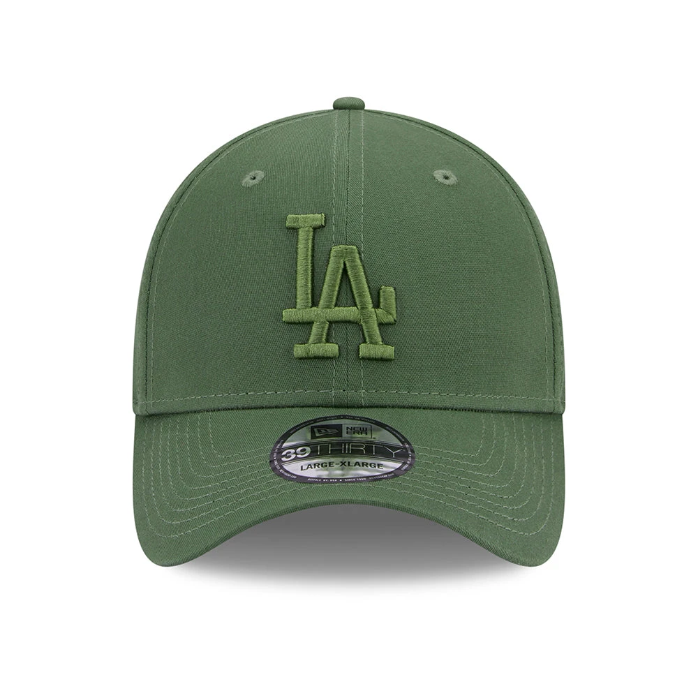 Here is the New Era 39THIRTY L.A. Dodgers MLB League Essential Baseball Cap in olive on olive. The cap features the team’s logo embroidered on the front. The New Era flag is embroidered on the left side. There is a sweatband that stretches for a great fit.