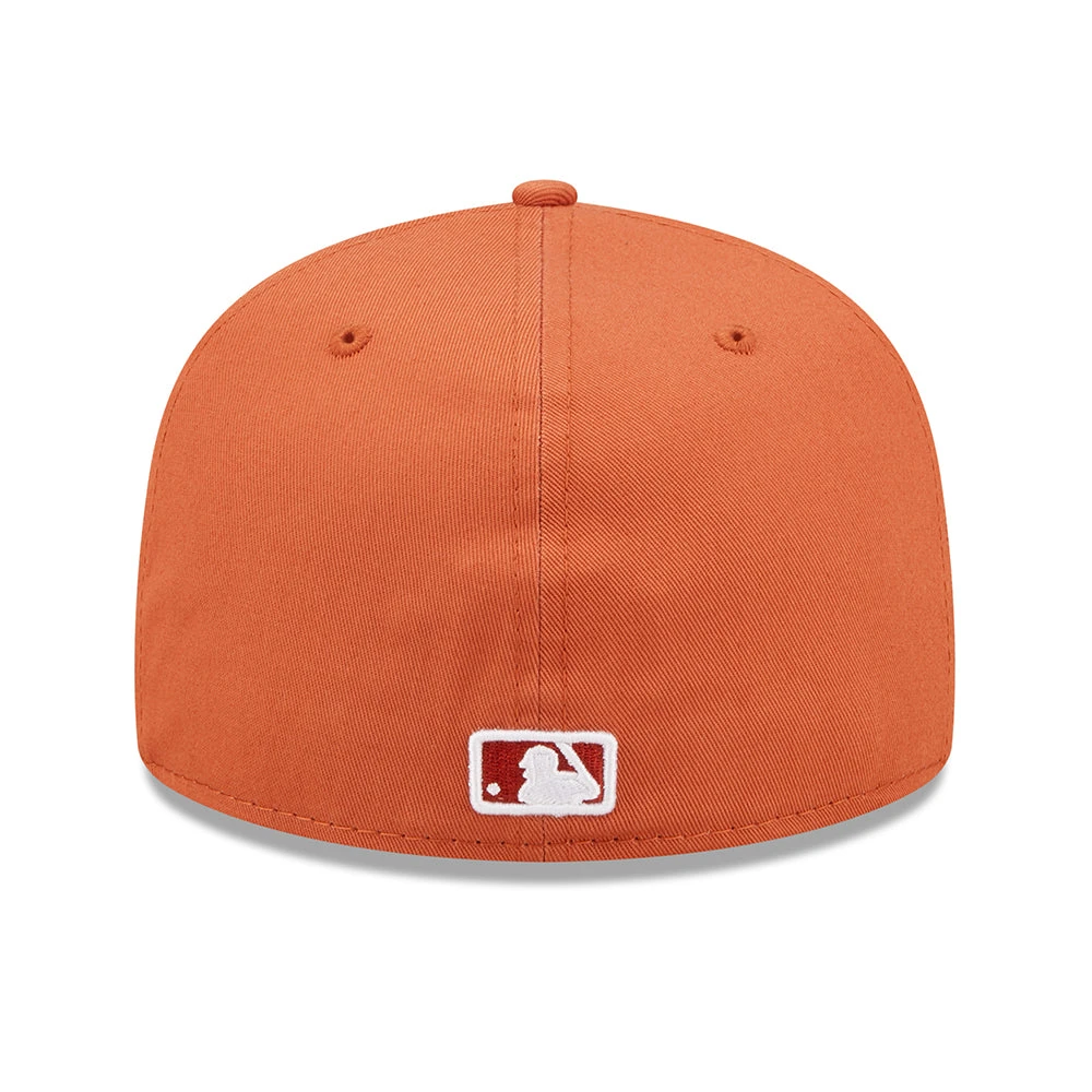 The League Essential 59FIFTY Oakland Athletics Cap in orange-white from New Era is a genuine 59FIFTY cap made of 100% cotton. The team’s logo is embroidered on the structured front while the New Era flag is embroidered on the left side of the cap and the MLB logo at the back.