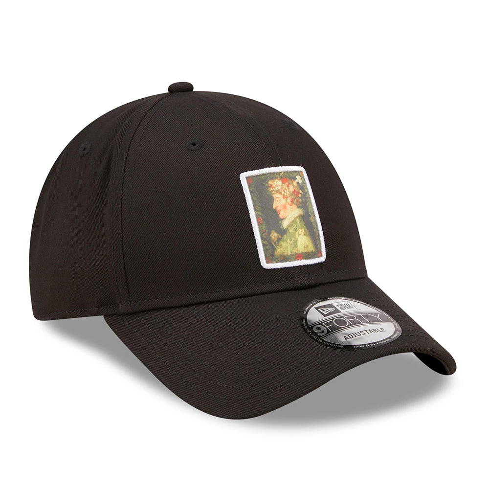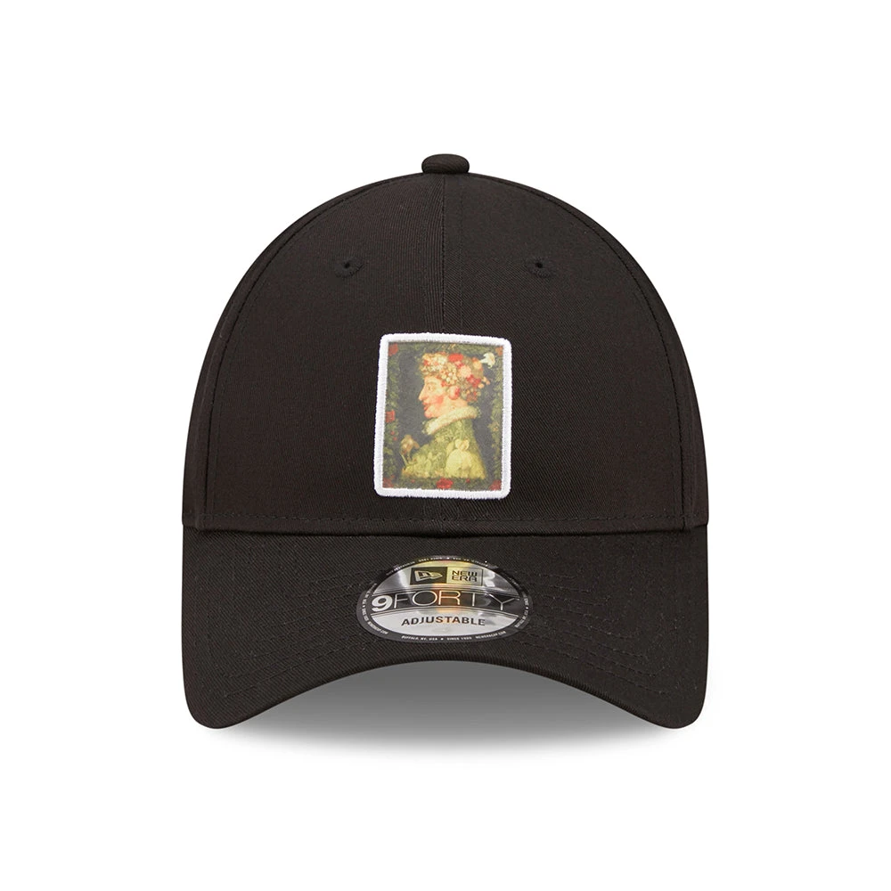 The 9FORTY Four Seasons Le Louvre Patch Baseball Cap in black is the newest collaboration between New Era and the Louvre museum. This unique cap features Giuseppe Arcimboldo’s Four Seasons painting on a patch sewn on the structured front panel. The New Era flag is embroidered on the side and an adjustable strap at the back allows for a comfortable fit.