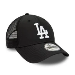 The 9FORTY MLB Home Field L.A. Dodgers Trucker Cap from New Era in black-white features the team’s logo embroidered on the structured front panels and the New Era flag on the left side. The back of the cap is in polyester mesh for breathability and features an adjustable hook-and-loop strap for a great fit.