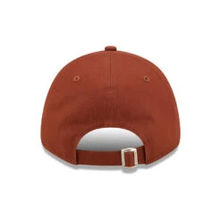 The 9FORTY New York Yankees MLB League Essential Baseball Cap in brown-rust from New Era is made of 100% cotton. The team logo is featured on the structured front and the New Era flag is embroidered on the left side of the cap. The six panel cap features breathable eyelets with a curved visor and value on top. The open back has an adjustable strap with metal buckle so the hat fits many sizes.