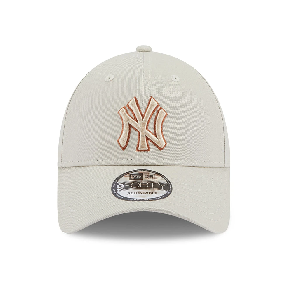 The 9FORTY New York Yankees MLB Team Outline Baseball Cap in stone-toffee from New Era is made of 100% cotton. The team logo is featured on the structured front and the New Era flag is embroidered on the left side of the cap. The six panel cap features breathable eyelets with a curved visor and value on top. The open back has an adjustable strap with metal buckle so the hat fits many sizes.