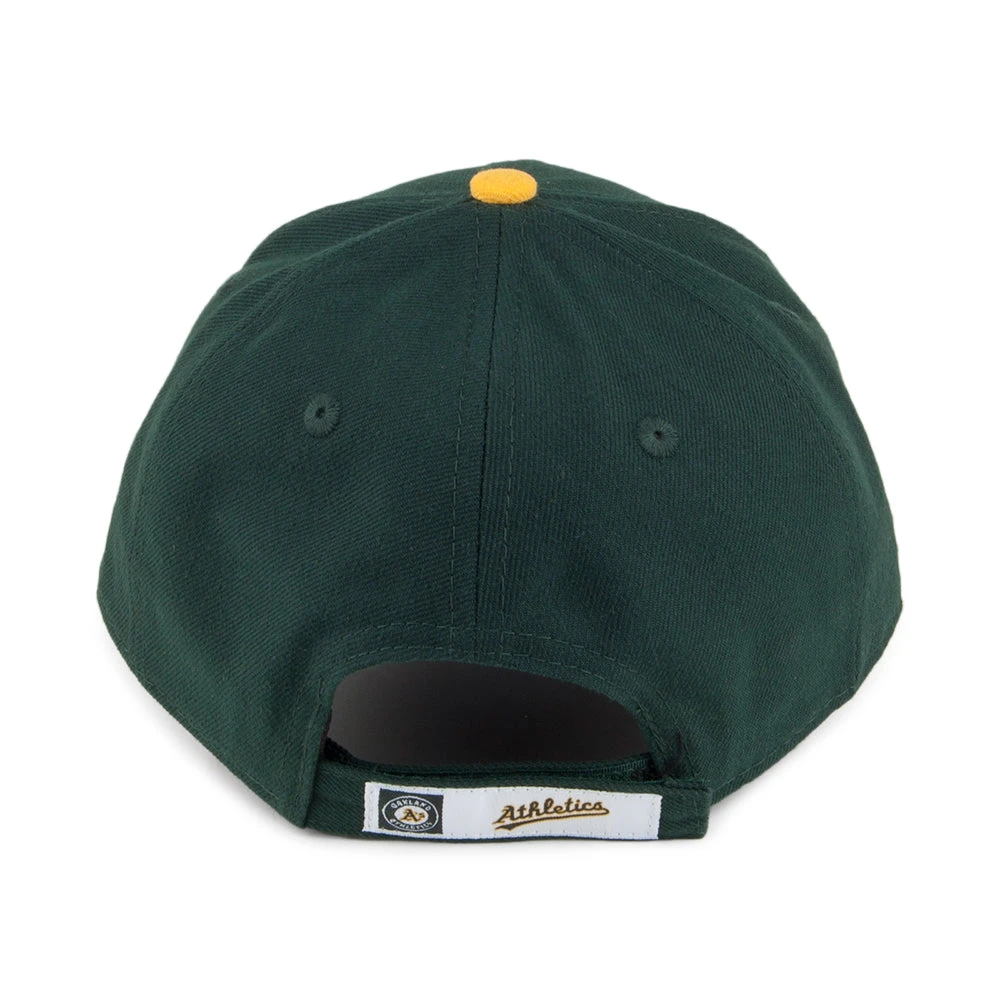 This 9FORTY cap from New Era is simply called ‘The League’. The hat is a structured, adjustable replica of the MLB® on-field cap with an embroidered Oakland A’s team logo on the front panel and stitched New Era® flag at wearer’s left side. The six panel construction features breathable eyelets with a curved visor and value at top. Open back has an adjustable hook-and-loop strap featuring the team name.
