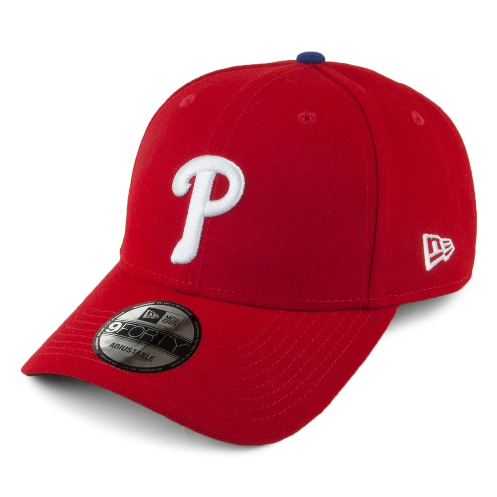 The 9FORTY is a structured, adjustable replica of the MLB® on-field cap with an embroidered Philadelphia Phillies team logo on the front panel and stitched New Era® flag at wearer’s left side. The six panel construction features breathable eyelets with a curved visor and value at top. Open back has an adjustable hook-and-loop strap featuring the team name.