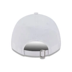 The 9FORTY Core Rugby Football Union Baseball Cap from New Era in white-scarlet features the English rose logo embroidered on the structured front panels and the New Era flag on the left side. It comes with a curved brim and eyelets for ventilation. There is an adjustable strap with a metallic buckle at the back for easy sizing.
