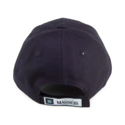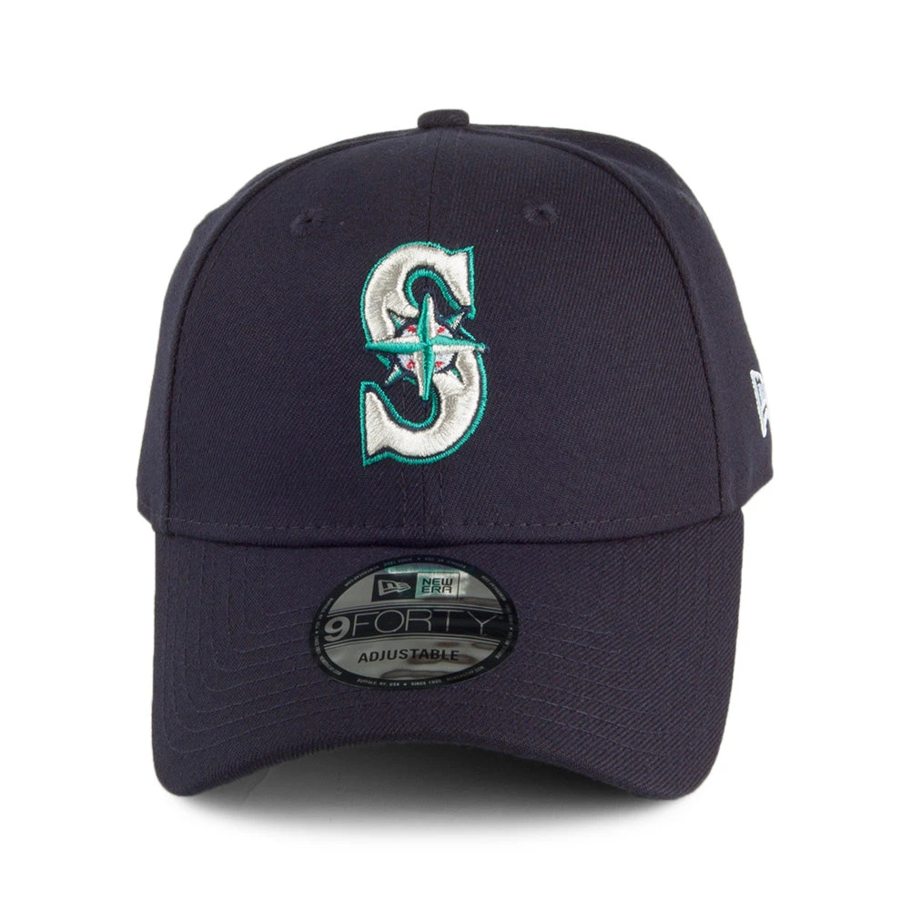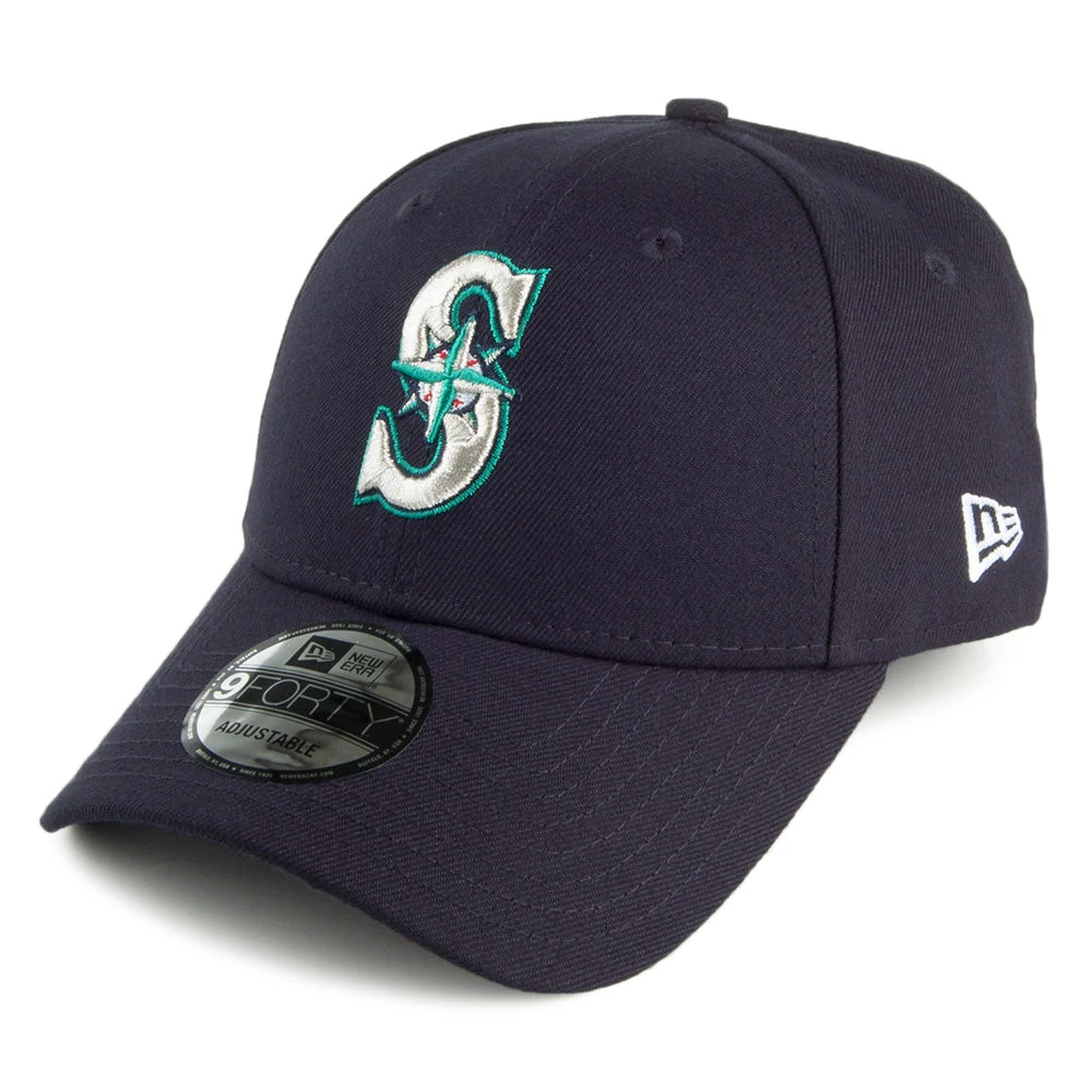 The 9FORTY is a structured, adjustable replica of the MLB on-field cap with an embroidered Seattle Mariners team logo on the front panel and stitched New Era flag at wearer’s left side. The six panel construction features breathable eyelets with a curved visor and value at top. Open back has an adjustable hook-and-loop strap featuring the team name.