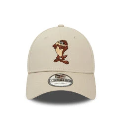 The 9FORTY Looney Tunes Character Taz Baseball Cap in stone from New Era is made of 100% cotton. It features Taz embroidered on the structured front and the New Era logo embroidered on the left side. There is an adjustable strap with a metallic buckle at the back for easy sizing.