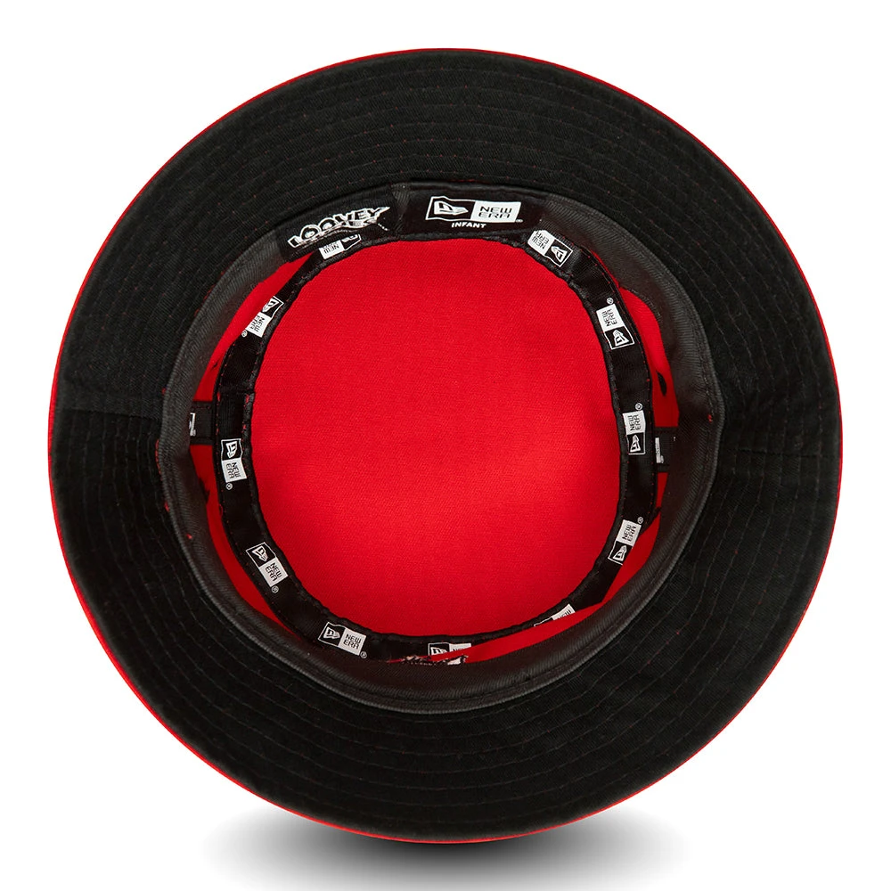 This adorable New Era Baby Chibi Looney Tunes Bucket Hat in scarlet features Sylvester embroidered on the front, the New Era flag embroidered on the left and a contrasting underbrim. The crown features eyelets for breathability.