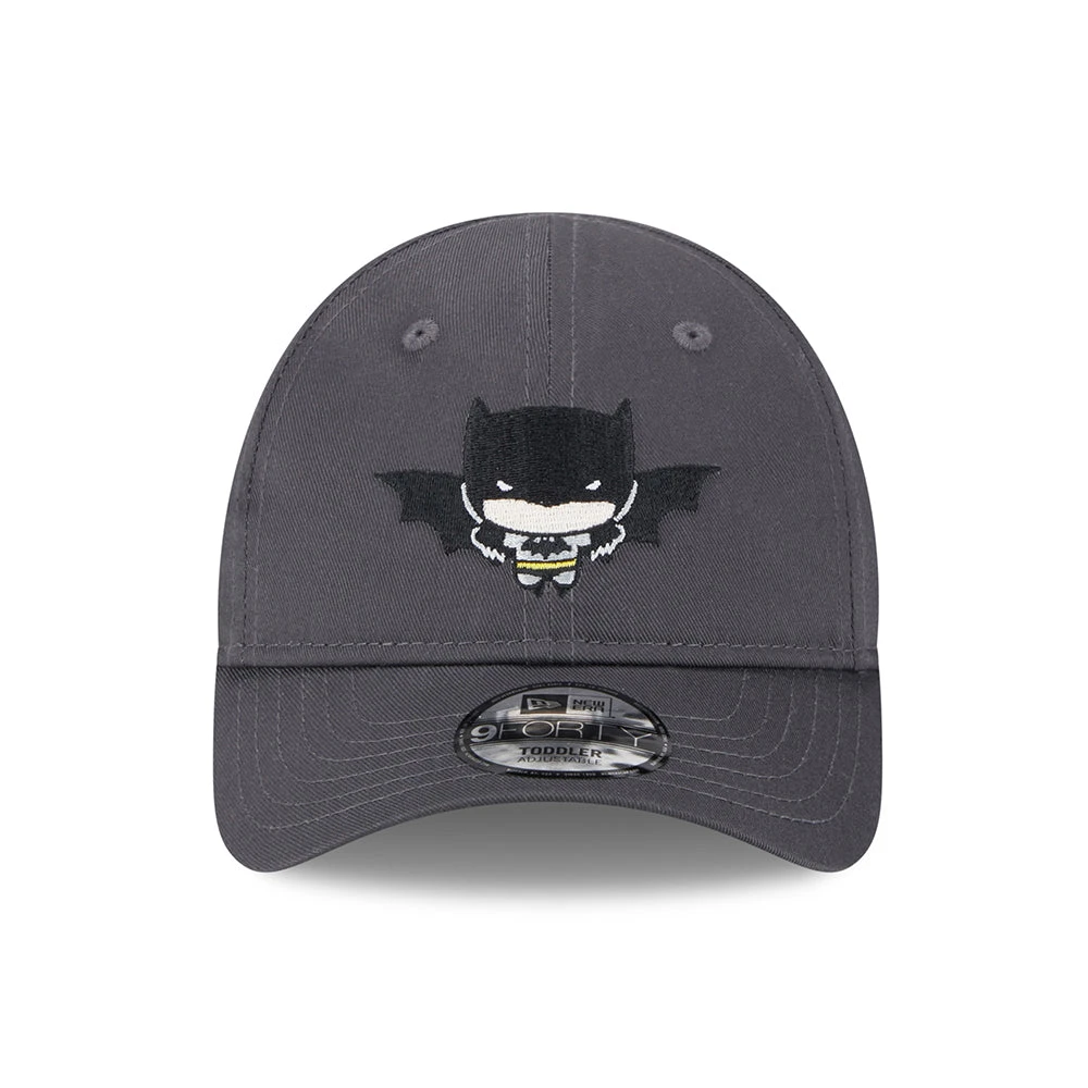 Here is the New Era Kids 9FORTY Chibi DC Comics Batman Baseball Cap in graphite. This adorable baseball cap features Batman embroidered on the front and the New Era flag embroidered on the left side. An adjustable hook-and-loop strap at the back will allow a comfortable fit.