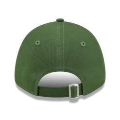 The New Era Kids 9FORTY L.A. Dodgers MLB League Essential Baseball Cap in olive features the team logo embroidered on the structured front of the cotton cap. The New Era logo is embroidered on the side and there is an adjustable strap at the back that should allow this hat to fit your young one’s head.