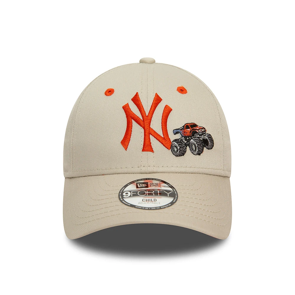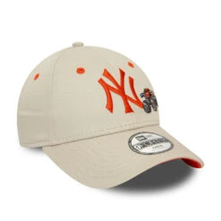 This adorable New Era Kids 9FORTY MLB Graphic New York Yankees Baseball Cap in stone-orange features the team logo and cute embroideries on the structured front panels. The New Era logo is embroidered on the side and there is an adjustable strap at the back that should allow this hat to fit your young one’s head.