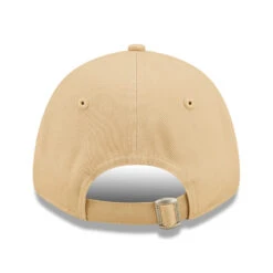 The New Era Kids 9FORTY New York Yankees MLB League Essential Baseball Cap in oatmeal-orange features the Yankees logo embroidered on the structured front of a 100% cotton cap. The New Era logo is embroidered on the side and there is an adjustable strap at the back that should allow this hat to fit your young one’s head.