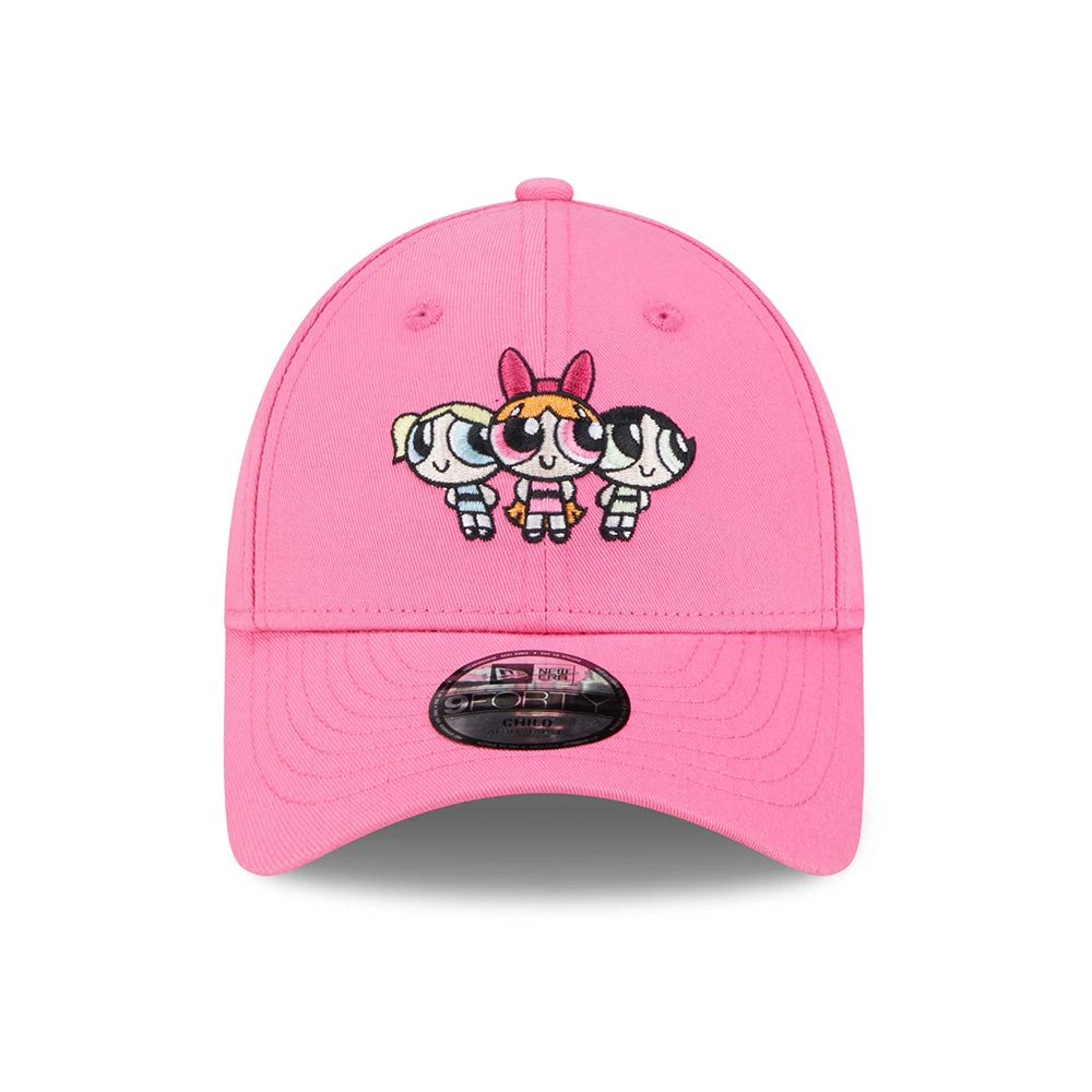 The New Era Kids 9FORTY Powerpuff Girls Baseball Cap in pink is made of 100% cotton and features the three Powerpuff Girls embroidered on the structured front panels. The New Era logo is embroidered on the side and there is an adjustable strap at the back that should allow this hat to fit your young one’s head.