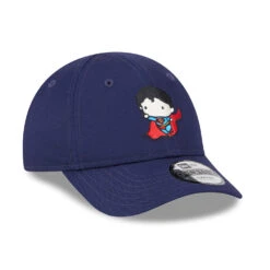 Here is the New Era Kids 9FORTY Chibi DC Comics Superman Baseball Cap in navy blue. This adorable baseball cap features Superman embroidered on the front and the New Era flag embroidered on the left side. An adjustable hook-and-loop strap at the back will allow a comfortable fit.
