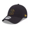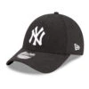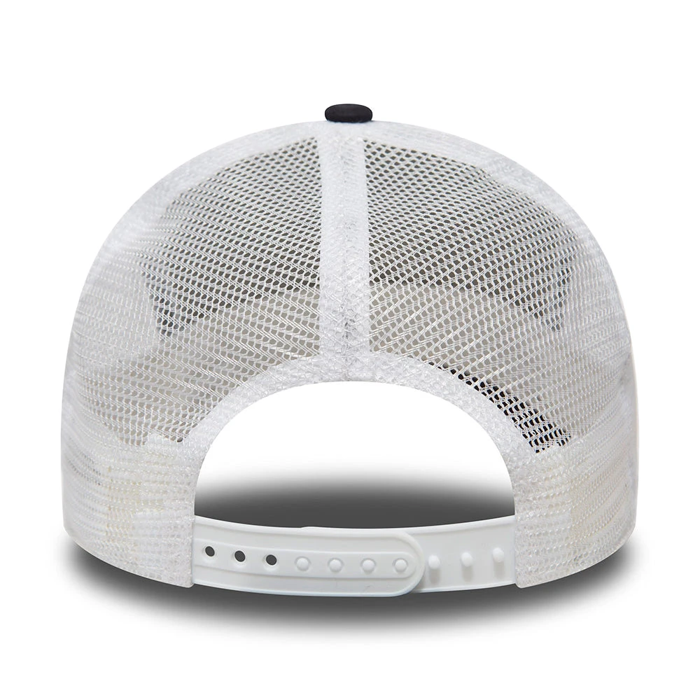 Here is the New Era New York Yankees MLB Clean Trucker A-Frame Trucker Cap in black. The cap has a structured cotton front with the team logo embroidered and a mesh back. The New Era flag is embroidered on the left side of the cap. It comes with a pre-curved brim and an adjustable snap at the back for a comfortable fit.
