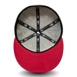The New Era 59FIFTY MLB Heather Contrast L.A. Dodgers Baseball Cap in grey-red features a heather grey crown and contrasting visor. The team logo is embroidered on the front of the crown in a colour matching the flat brim. There is a New Era flag embroidered on the side and MLB logo embroidered at the back.