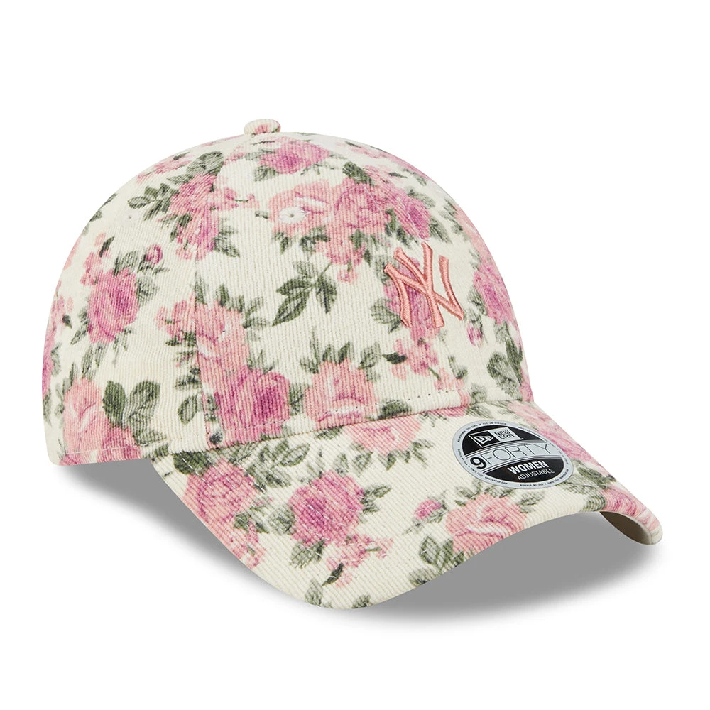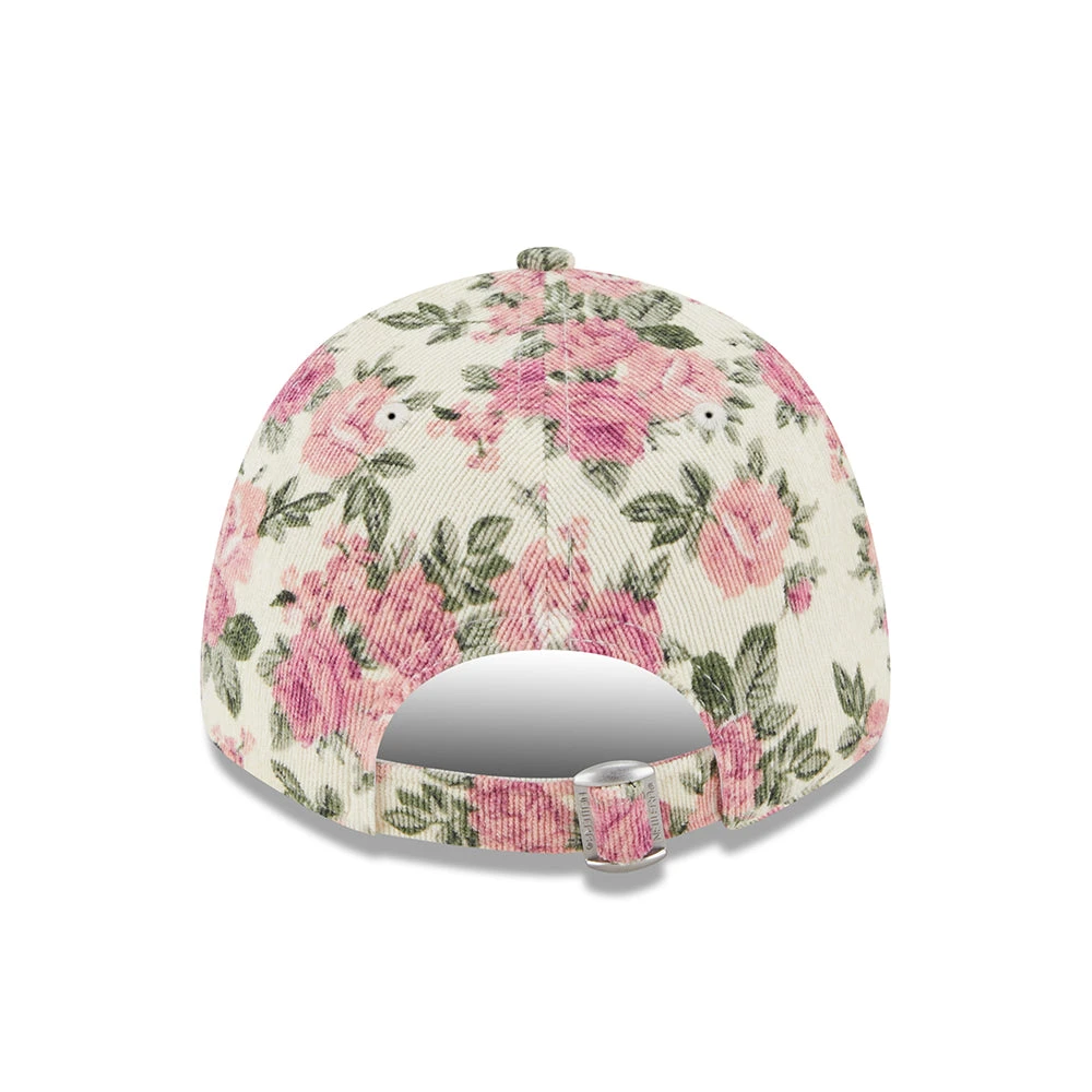 The New Era Women’s 9FORTY MLB Floral Cord New York Yankees Baseball Cap in stone-pink features the team’s logo embroidered on the structured front panels and the New Era flag on the left side. It comes with a curved brim and eyelets for ventilation. There is an adjustable strap with a metallic buckle at the back for easy sizing.