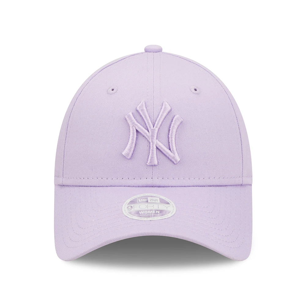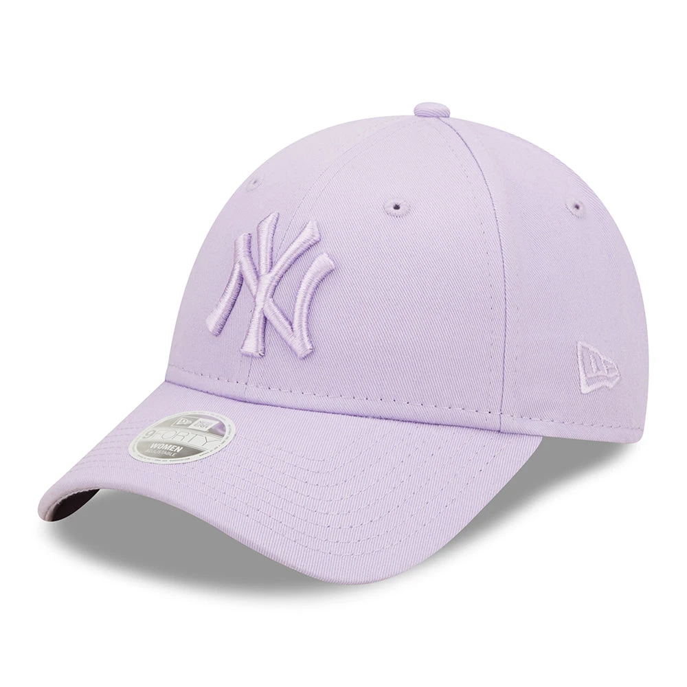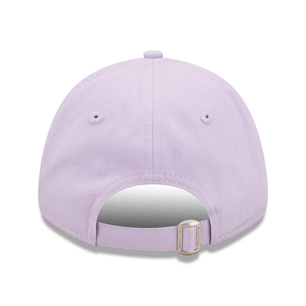 This is the New Era Women’s 9FORTY MLB League Essential New York Yankees Baseball Cap in lilac. The team’s logo is embroidered on the structured front of the cap and the New Era flag is embroidered on the left side. The six panel cap is made of 100% cotton and features breathable eyelets with a curved visor and value on top. The open back has an adjustable cotton strap with metal buckle so the hat fits many sizes.