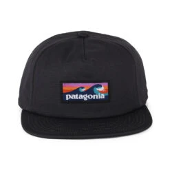 The Patagonia Hats Boardshort Label Funfarer Organic Cotton Baseball Cap in ink black is made of 100% organic cotton. The flat brim of the cap is made of Bureo’s 100% recycled fish nets. The unstructured crown features a Patagonia patch sewn on the front. A Patagonia fliptag can be found next to the adjustable snap at the back.
