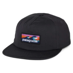 The Patagonia Hats Boardshort Label Funfarer Organic Cotton Baseball Cap in ink black is made of 100% organic cotton. The flat brim of the cap is made of Bureo’s 100% recycled fish nets. The unstructured crown features a Patagonia patch sewn on the front. A Patagonia fliptag can be found next to the adjustable snap at the back.