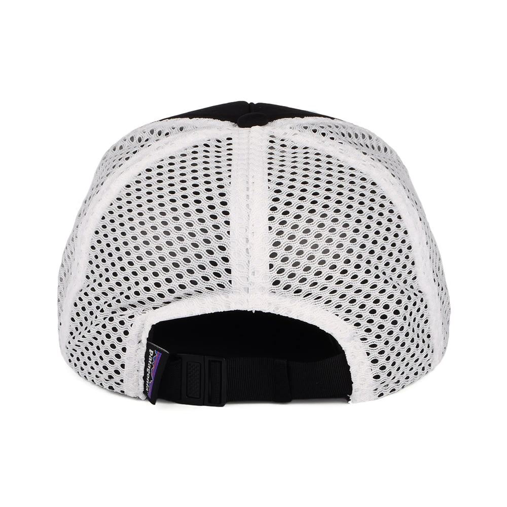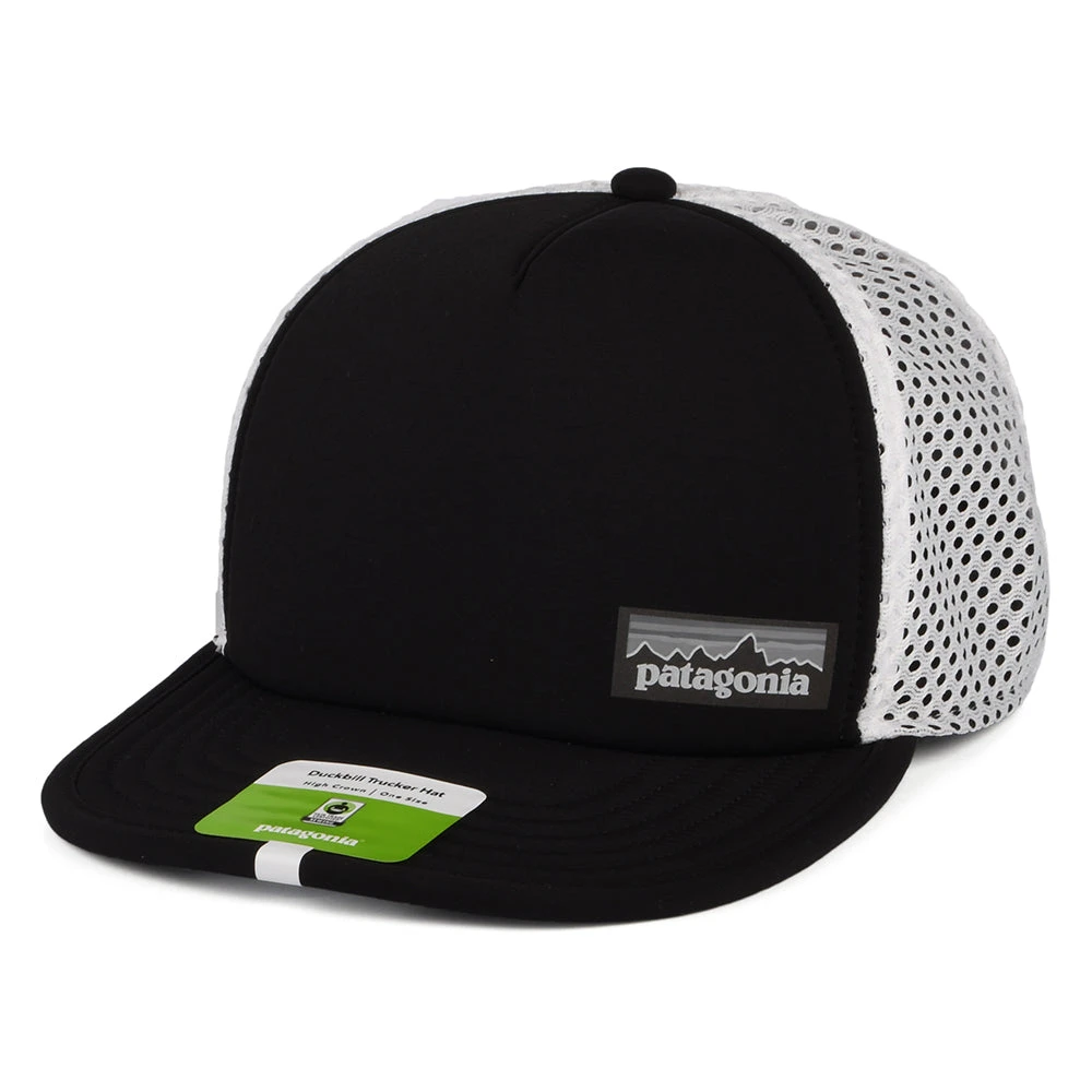 The Patagonia Hats Duckbill in black is a Fair Trade Certified™ trucker cap made in 100% recycled materials. This versatile style is the ideal trucker cap. It provides the coverage of a baseball cap with a mesh back that helps dissipate heat. This cap features the Patagonia logo on the side of the padded front panel. On the inside is a HeiQ Pure sweatband for odour control and a strap at the back adjusts to fit most sizes. The packable foam brim folds into a pocket for easy packing, then rebounds to its original shape.