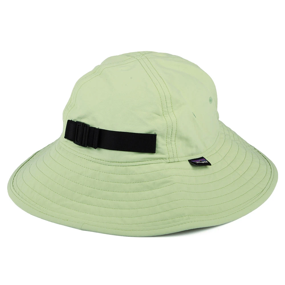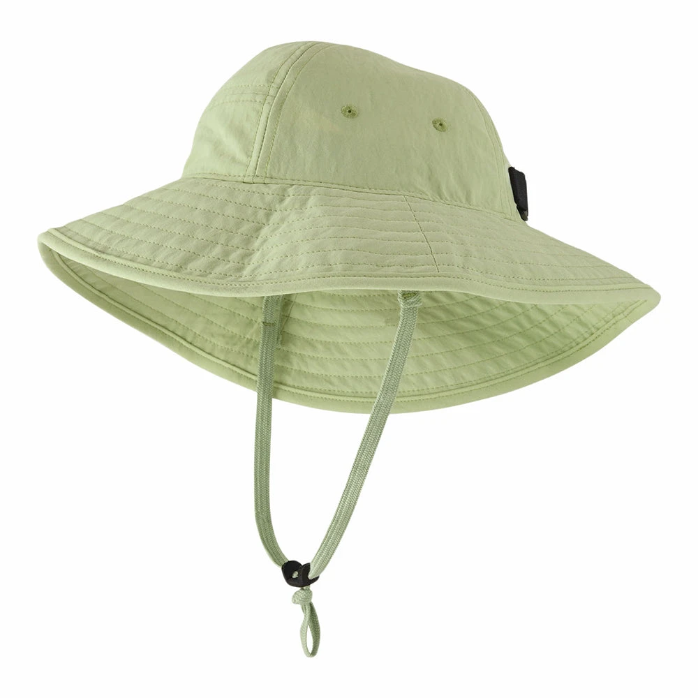 The Patagonia Hats Kids Trim Brim Sun Hat in light green is made of a lightweight recycled nylon. This full-brimmed boonie style hat has a adjustable and removable chin strap to keep it in place. Featuring a DWR (durable water repellent) finish and 40+ UPF sun protection, this hat will protect your children from the elements! An adjustable strap at the back will ensure a perfect fit.