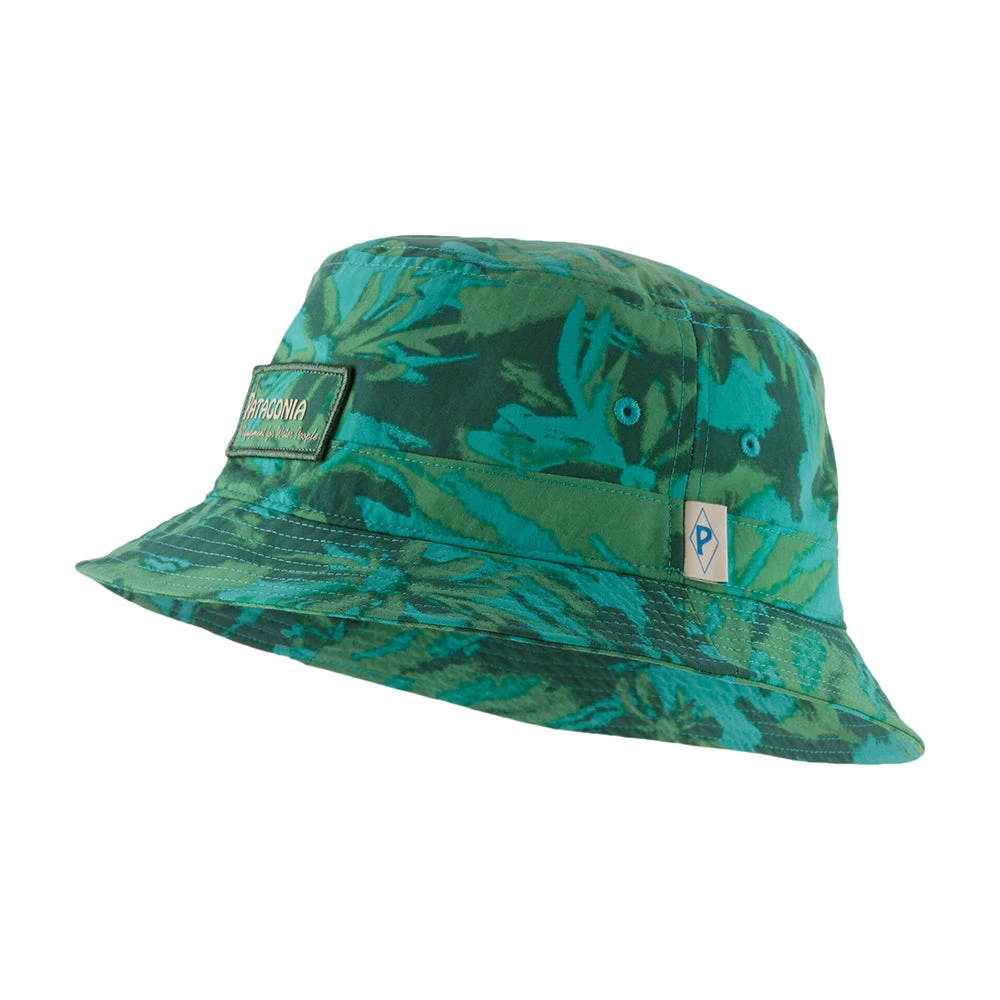 The Patagonia Wavefarer Bucket Hat in turquoise-green is an eye catching hat for the summer. The Wavefarer is a versatile sun hat for any occasion on land or sea. It rolls up for easy packing and is made of a quick-drying, lightweight recycled nylon from 100% fishing nets with a durable water repellent (DWR) finish made without perfluorinated chemicals (PFCs/PFAS). Inside is a secret pocket to hide your valuables.