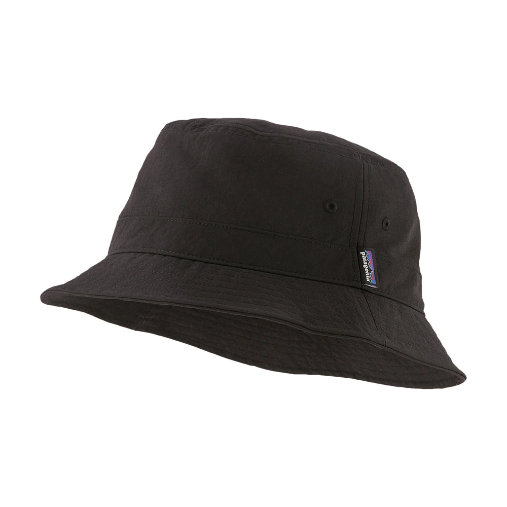 The Patagonia Wavefarer Bucket Hat in black is an eye catching hat for the summer. The Wavefarer is a versatile sun hat for any occasion on land or sea. It rolls up for easy packing and is made of a quick-drying, lightweight recycled nylon from 100% fishing nets with a durable water repellent (DWR) finish made without perfluorinated chemicals (PFCs/PFAS). Inside is a secret pocket to hide your valuables.