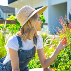 The Scala Annabel Sun Hat in natural is made in Mexico from braided palm. This beautiful sun hat will be your new favourite this summer. The hat is unlined for breathability and there is an elasticized sweatband for a comfortable fit. An adjustable chincord with toggle will secure the hat on your head on windy days.