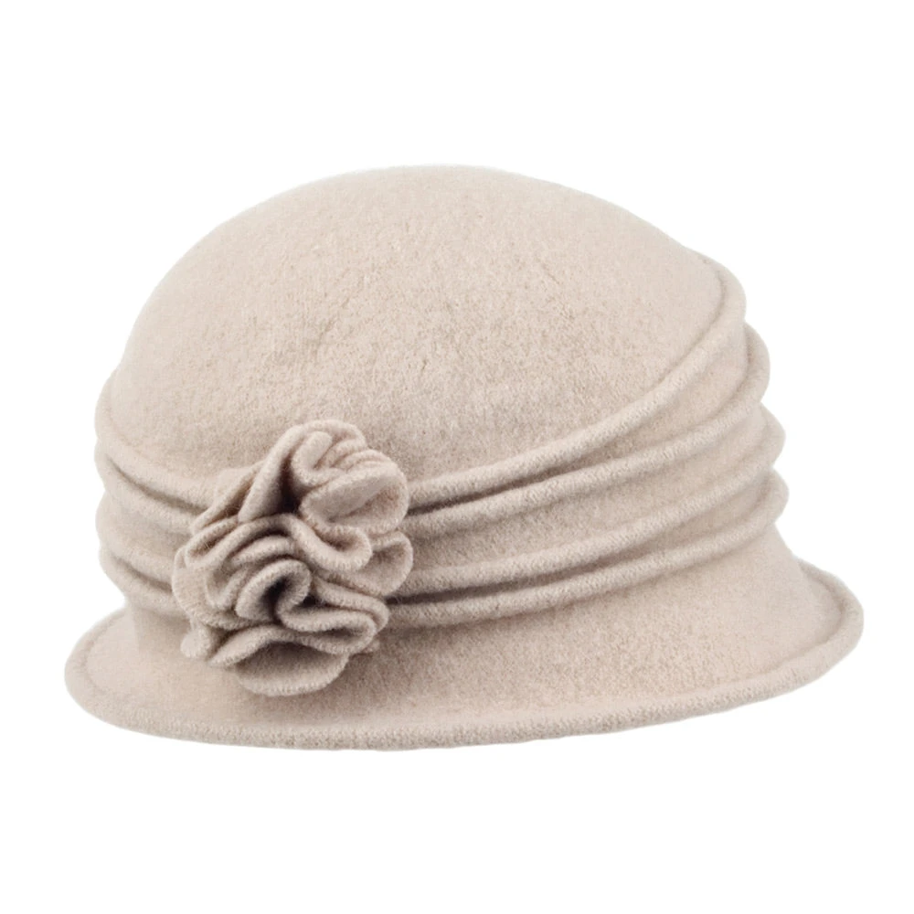 The Scala Grace Wool Cloche with Flower in taupe is an adorable lightweight hat that is perfect for when you’re out and about as it is completely packable. The cloche hat is made out of 100% wool which will keep you warm and there is pretty ruching and a flower around the hat.