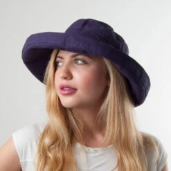 The navy blue Lanikai sun hat is made from 100% cotton canvas and easily packs up into a bag or suitcase. The kettle edge brim measures 10cm wide, and 12.5cm when turned down to provide the ultimate sun protection. The 9cm high square crown is completely lined in cotton poplin. A drawstring inside the sweatband allows you to adjust for a perfect fit.