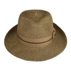 The Scala Hats Marton Fedora Hat in brown is made of 100% toyo straw. The hat features a crushable crown that is unlined. Inside of the hat is an elasticized sweatband for additional comfort. A grosgrain hat band is finished with bow a Scala pin sewn on the side. A beautiful hat for the summer!