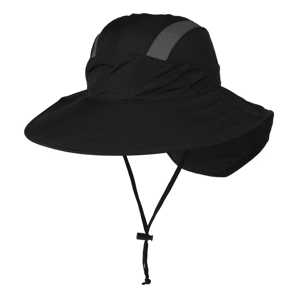 The Scala Natalie Foldable Sun Hat in black has a UPF 50+ sun protection. It is a lightweight style and features a moisture wicking sweatband and mesh panels to keep you dry and cool. There is a long neck protector at the back and a chin cord to keep the hat on. If you are looking for an inexpensive way to protect yourself from the sun while hiking or camping, look no further. This is the hat for you.