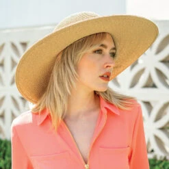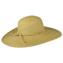 The Scala Newport Paper Braid Sun Hat in natural is an elegant summer hat for women which will be perfect for the hot sunny days thanks to its super wide brim and UPF 50+ sun protection. The hat is unlined for additional breathability and comes with a grosgrain sweatband for comfort. The hat is finished with a hat band tied at the back and a Scala pin on the side.
